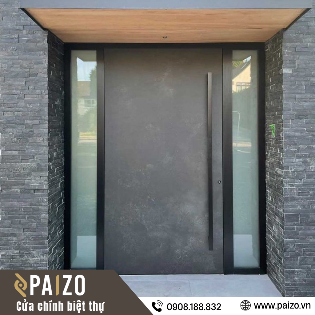 • Cửa chính paizo biệt thự bản lề ẩn mẫu 15- Thiết kế 1 cánh fix ô kính cố định